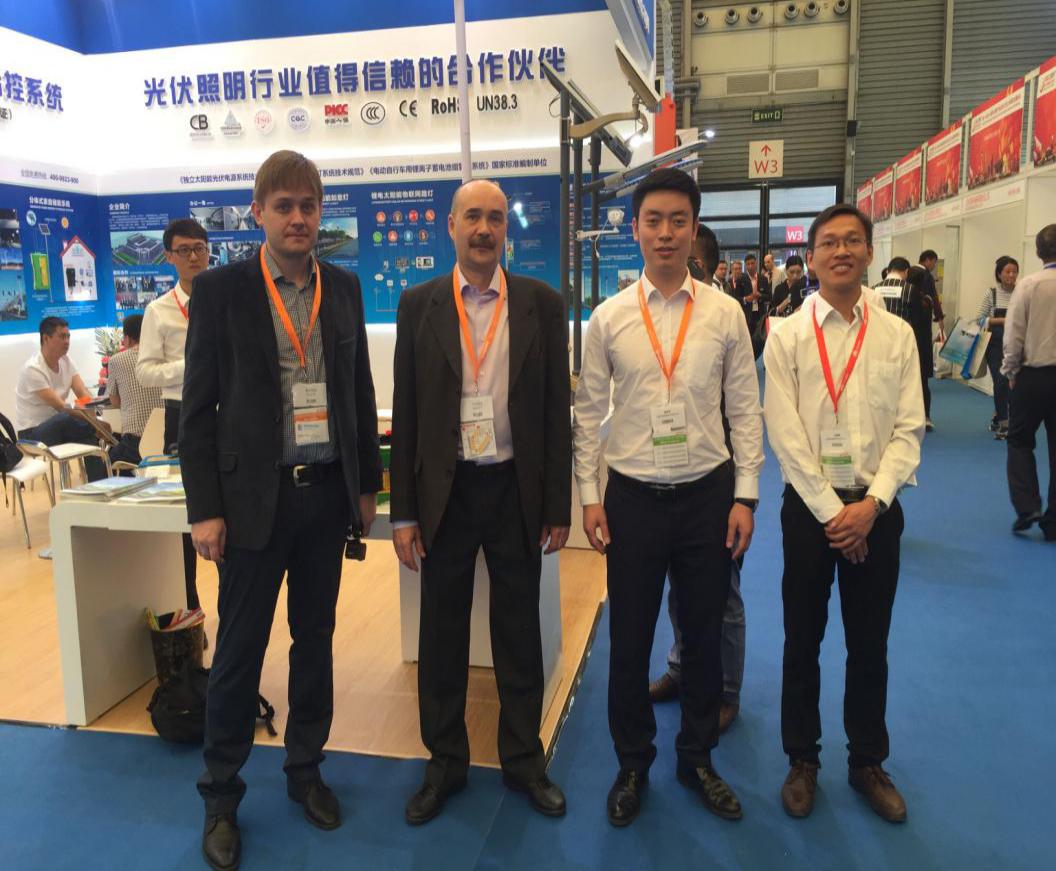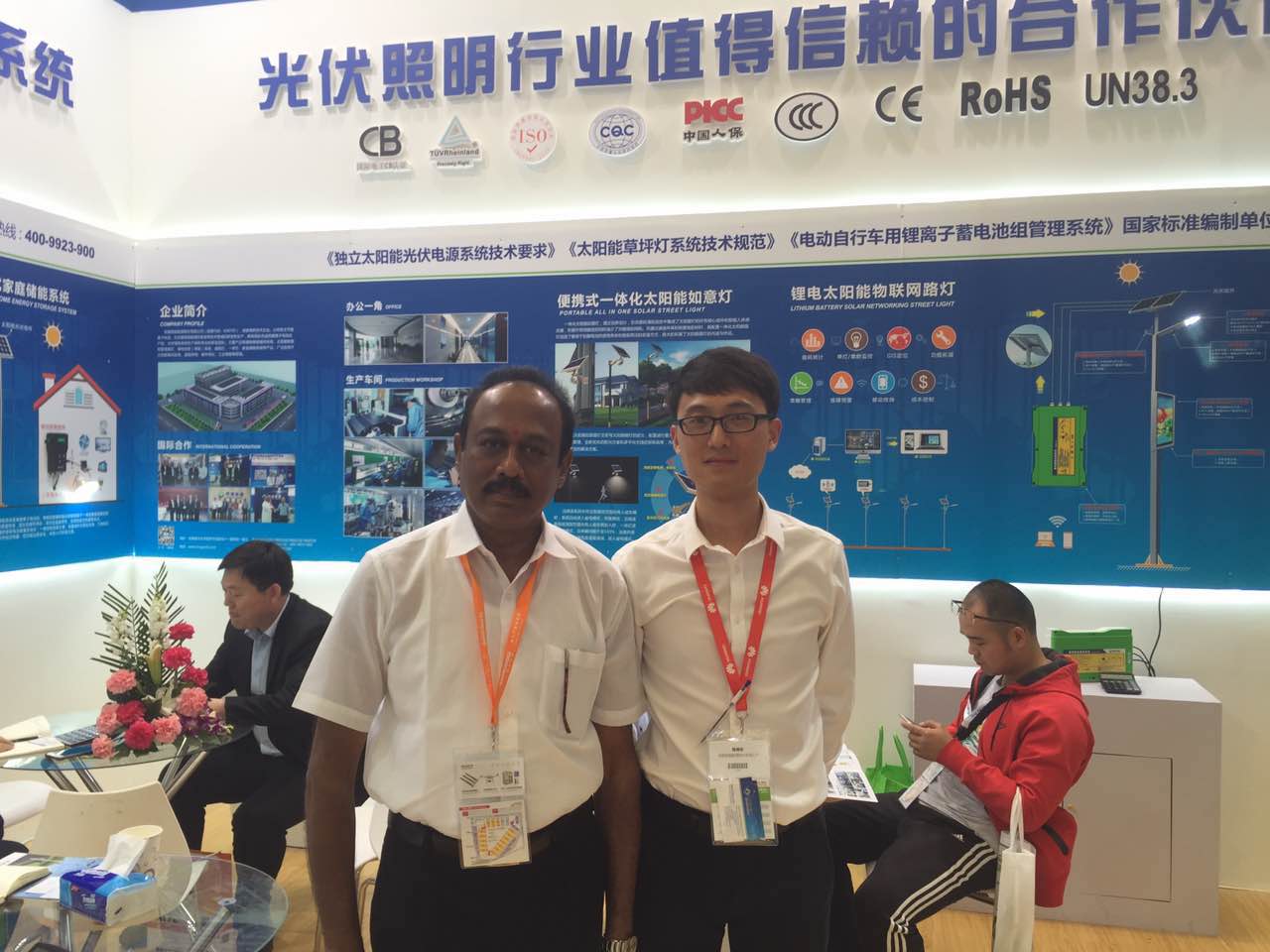 2017年4月上海国际光伏照明展,外贸部主管与意向客户合影。