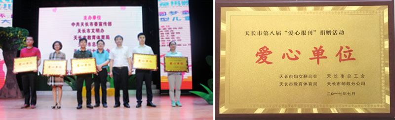 捐赠仪式结束后,市妇女联合会、市总工会、市教育体育局、天长市邮政分公司对安徽朗越能源股份有限公司等爱心企业进行了“爱心报刊”捐赠活动授牌仪式。天长市委宣传部副部长、市文明办主任赵森华向长期以来支持关爱少年儿童成长的爱心企业及各界爱心人士表示衷心的感谢。他表示,本次活动非常有意义,今后将积极整合优势资源和力量,真情关爱儿童成长,努力为全市儿童的健康成长创造更好的生活、学习和成长环境。