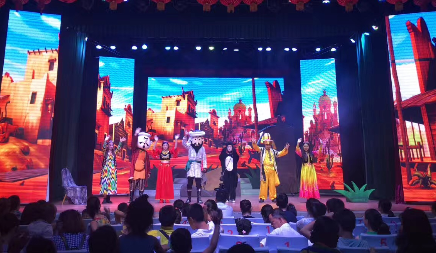 现场600多名儿童及家长一起欣赏了《阿凡提》话剧演出,并积极与演员进行了现场互动,大家在欢呼声中度过了一个美好的上午时光。