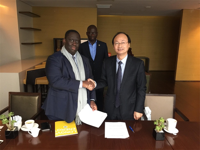 2018年11月13日,朗越能源(股票代码:838703)董事长徐淞芝先生在塞内加尔共和国驻华使馆与公使衔参赞Mr. Mamadou SARR(玛玛杜·萨拉)和塞内加尔盖迪亚瓦耶市市长Mr .Aliou SALL进行友好会晤。双方就彼此未来合作进入深入探讨,并在现场签署《太阳能路灯市政道路照明合作备忘录》。此次合作奠定了朗越能源进军非洲市场新的里程碑。