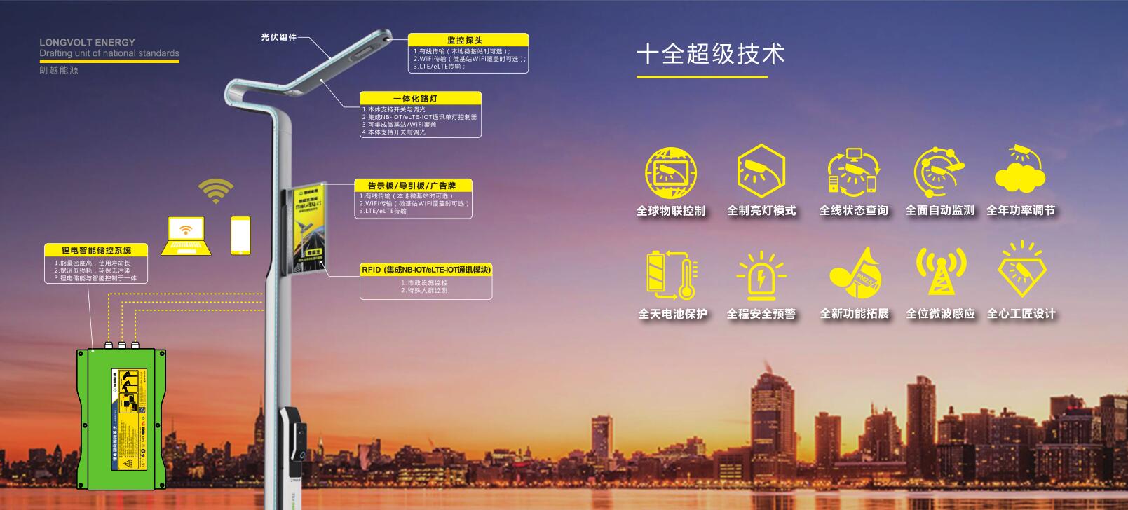 作为国家标准的参编起草单位,参与起草了GB/T33766-2017《独立太阳能光伏电源系统技术要求》、GB/T35264-2017《太阳能草坪灯系统技术规范》等国家标准,CQC1126—2017《太阳能路灯用锂离子电池组技术规范》、CQC11-464117-2017《太阳能路灯用锂离子电池组安全认证规则》等行业标准。近日,朗越能源还获得了由光伏发电及产业化标准推进组-系统及部件推进组评选的“标准化工作先进单位”,朗越能源将全面助力行业向规划化、标准化方向发展。