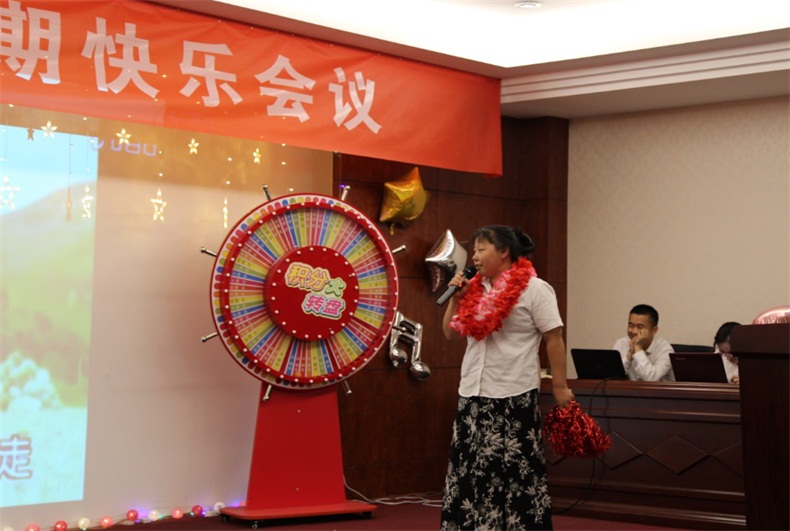 本次快乐会议除了有以往大家所熟悉的表彰环节、过生日环节、才艺展示环节、幸运抽奖环节,还增设了游戏互动和奖票竞拍环节,现场氛围也是较以往更为活跃。尤其是员工才艺展示和奖票竞拍环节,更是将整个会议的快乐推到了热点,员工表演期间,不断有员工上台送花互动,奖票竞拍环节像一场小型的拍卖会,这一环节的创意受得了员工们的一直认可与肯定。