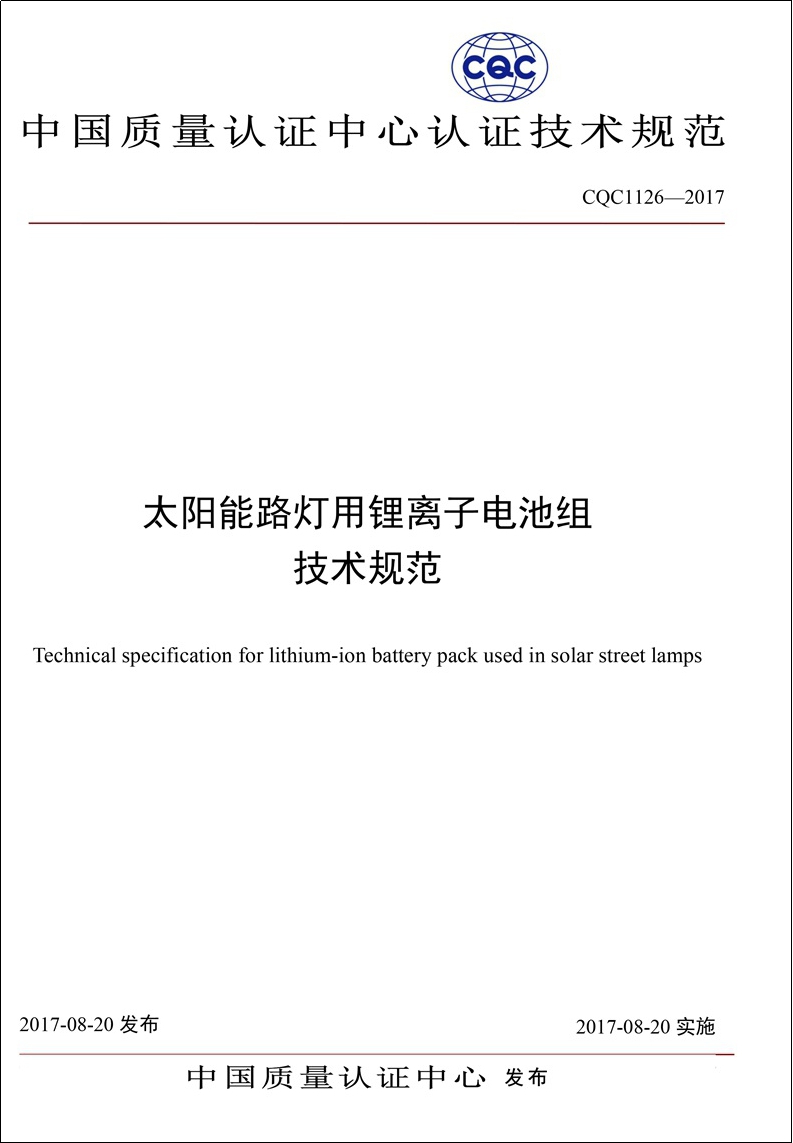没有规矩,不成方圆。照明事业的不断发展对标准化工作提出了更高的要求,而标准化工作的不断完善则有力的推动着照明事业走向更高水平和质量的发展方向。标准化工作作为产业发展的支撑,有着极为重要的意义。标准化工作作为产业发展的支撑,有着极为重要的意义。朗越能源积极参与起草编制了GB/T 33766-2017《独立太阳能光伏电源系统技术要求》、CQC1126-2017《太阳能路灯用锂离子电池组技术规范》、CQC11-464117-2017《太阳能路灯用锂离子电池组安全认证规则》、GB/T 35264-2017《太阳能草坪灯系统技术规范》、20162475-T-339《锂离子电池组安全设计指南》等各项行业及技术标准。