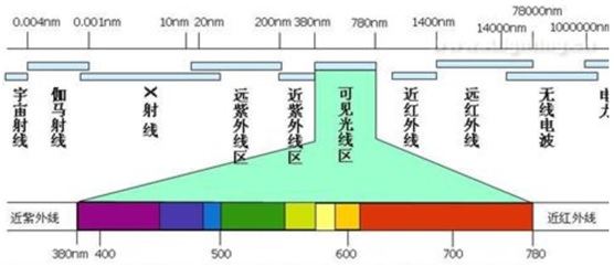 由图可以看出可见光波长在380nm-780nm之间,而光伏组件的响应波长明显大于这个范围,所以在阴天时候太阳能路灯的发光效率可能要降低,但是它还是在不断的发电的。