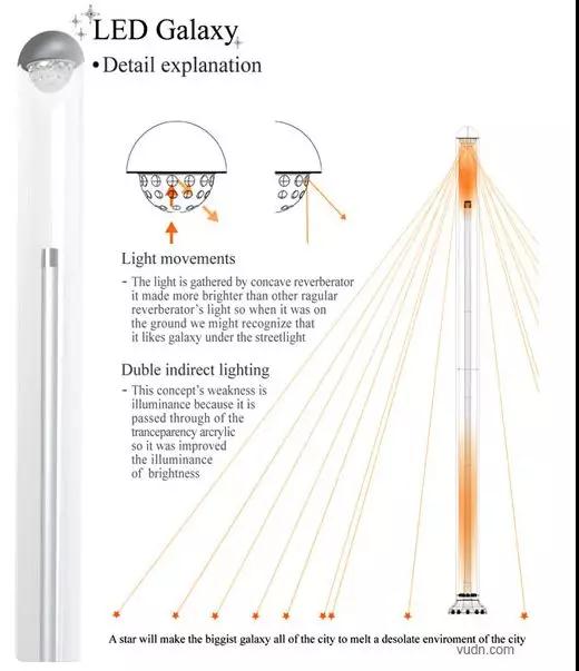 设计师Sungkuk Park有一个深思熟虑的想法,他运用先进的LED,碳纤维,反射炉,生物树脂涂料,创造了一个灯光投射出的路灯,像星星洒在街上一样闪闪发光。这可以用比传统灯更少的能源来覆盖整个街面。