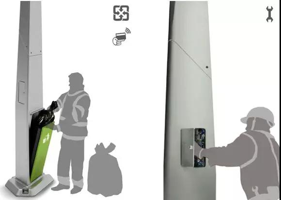 白天路灯吸收太阳能,灯柱的各种颜色和明显图标能够轻易的分辨垃圾桶的分类,使用磁卡来打开垃圾收集器,垃圾的盗窃、意外翻倒、卫生问题都能一气呵成的解决。