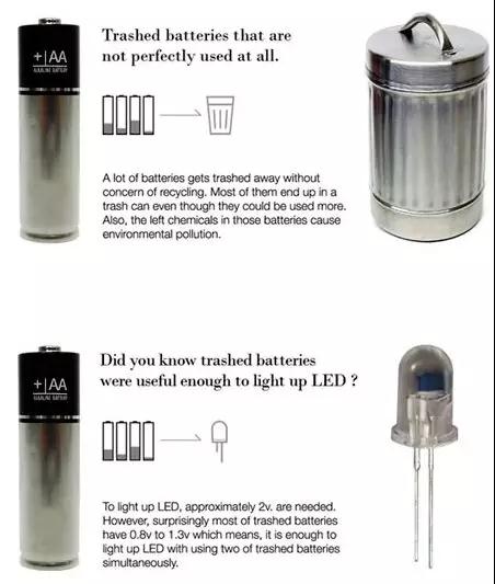 这款路灯不仅有收集废电池的作用,还能对废电池中剩余的电进行利用——为路灯提供电力。
