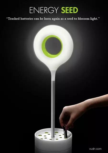 众所周知,电池中的碱对土地的破坏是不可估量的,因此需要对电池作回收利用处理,但是目前来说,回收利用电池的渠道与方式并不多,因此设计师尝试设计了一款废电池收集箱兼路灯energy seed,相信能够受到欢迎。