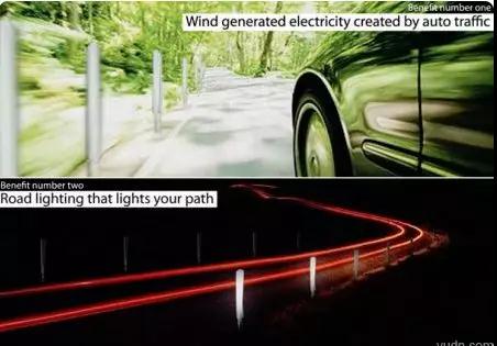 而设计师则打算将这股气流运用起来,他们计划在公路路灯上安置一个附加设备,将这股风能收集并转化为电能,为路灯照明提供能源支持。此外,路灯之间还能通过无线沟通,当车辆经过的时候通知前方一定范围内的同伴打起精神,工作起来。