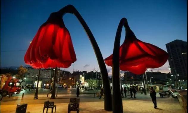4朵鲜红色的大花被安置在瓦莱罗广场中心,每一朵花的直径长达9米,并配有独立的感应器,当有人靠近时,花朵盛开,完全绽放,当人们远去,花瓣合拢下落,感应器不仅感知人,当电车接近车站时,也会引发同样的的绽放效果。