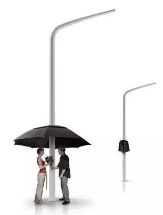 这是天马行空的设计师制作的一款雨伞创意路灯——据说有一滴雨滴在路灯上,它所配置的雨伞就会自动打开。如此一来,下雨时是不是就不用担心没带伞了?
