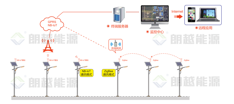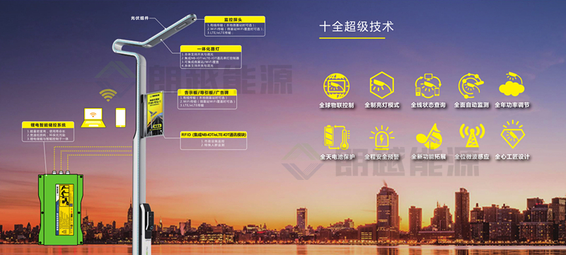 朗越锂电太阳能物联网智慧照明系统是基于Zigbee的LED路灯远程无线控制系统,是一种自动化成度高、高效节能的路灯照明系统,LED光源高效能、环保、安全、耐用,而无线控制技术其可以对于路灯照明系统进行科学高效的控制和资源整合,合理调整照明时间,不仅可以节省照明系统的用电量,延长使用的阴雨天数,还可以自由改变亮灯策略,使亮灯模式更符合客户需求。